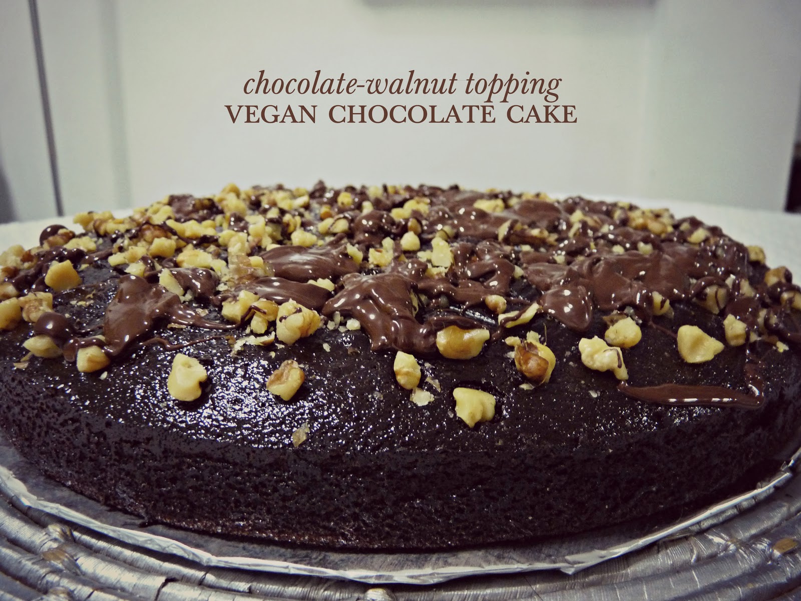 A vegan version of our favorite Chocolate Cake decked with chocolate and walnuts! Chocolate cake is a hit with everyone, so whether you’re vegan, or gluten or dairy intolerant – or you just love a good cake – this one’s for you.